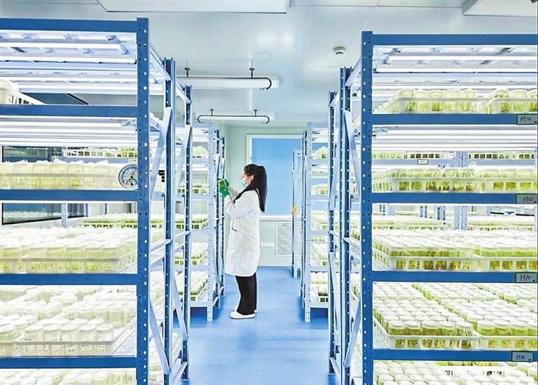 甘肅農(nóng)墾亞盛農(nóng)業(yè)研究院工作人員在查看試管苗生長情況