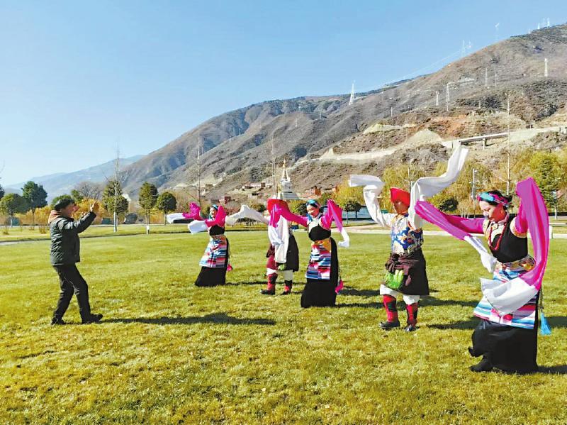 弦子舞跳進(jìn)全國春節(jié)“村晚”,非遺火熱“出圈”,是巴塘縣多年努力的成果?!跋易游枨陙硪揽靠趥餍氖诘姆绞絺鞒?,沒有具體樂譜。為保護(hù)傳承這一非物質(zhì)文化遺產(chǎn),我們將弦子編入學(xué)校課間操,并成立弦子數(shù)據(jù)庫,目前已收集661張圖片、182組詞、244組曲、608首音頻、402個(gè)視頻?!卑吞量h文化廣播電視和旅游局副局長童玲介紹。