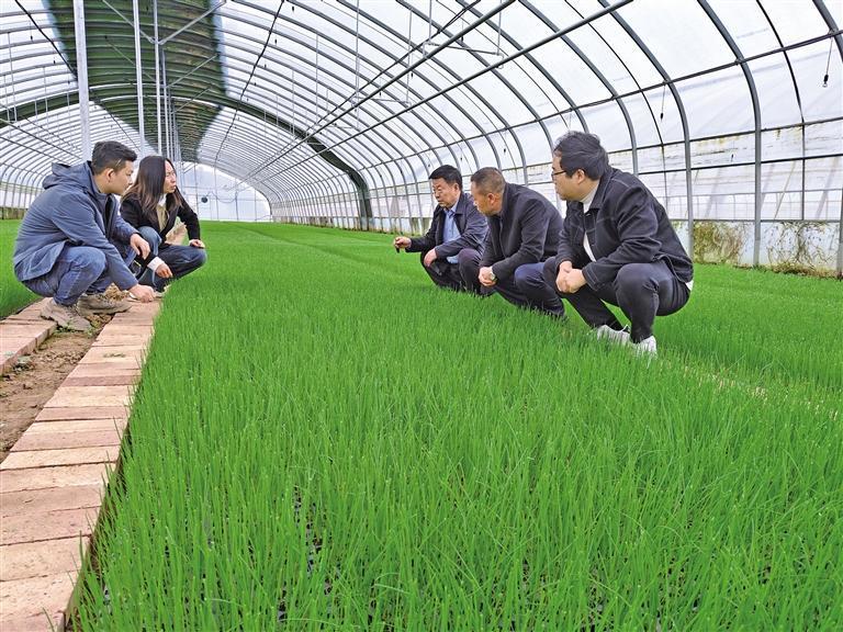 高嘴頭村駐村工作隊隊員查看蔥苗培育情況(資料照片)受訪單位供圖