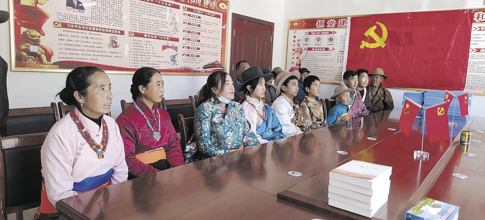 “走啊扎西,去村委會(huì)聽(tīng)課去!”村民田桑斗吆喝著村民走向新時(shí)代文明實(shí)踐站。