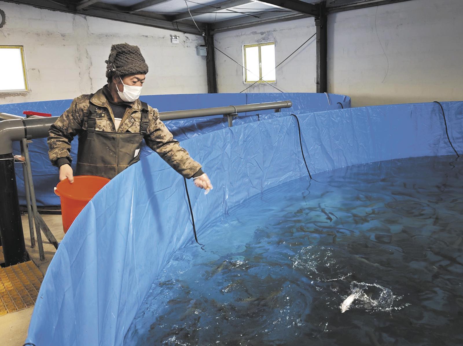 基地負(fù)責(zé)人楊光介紹,目前池子里正茁壯成長著約2萬尾虹鱒魚,經(jīng)過近10個月的精心喂養(yǎng),目前每條重量達(dá)到一斤左右?!邦A(yù)計在今年年底,這些魚將被出售,按照當(dāng)前的市場價格估算,銷售額達(dá)到300多萬元。此外,基地還有5萬尾鱸魚,也將在今年6月出售?!?/p>