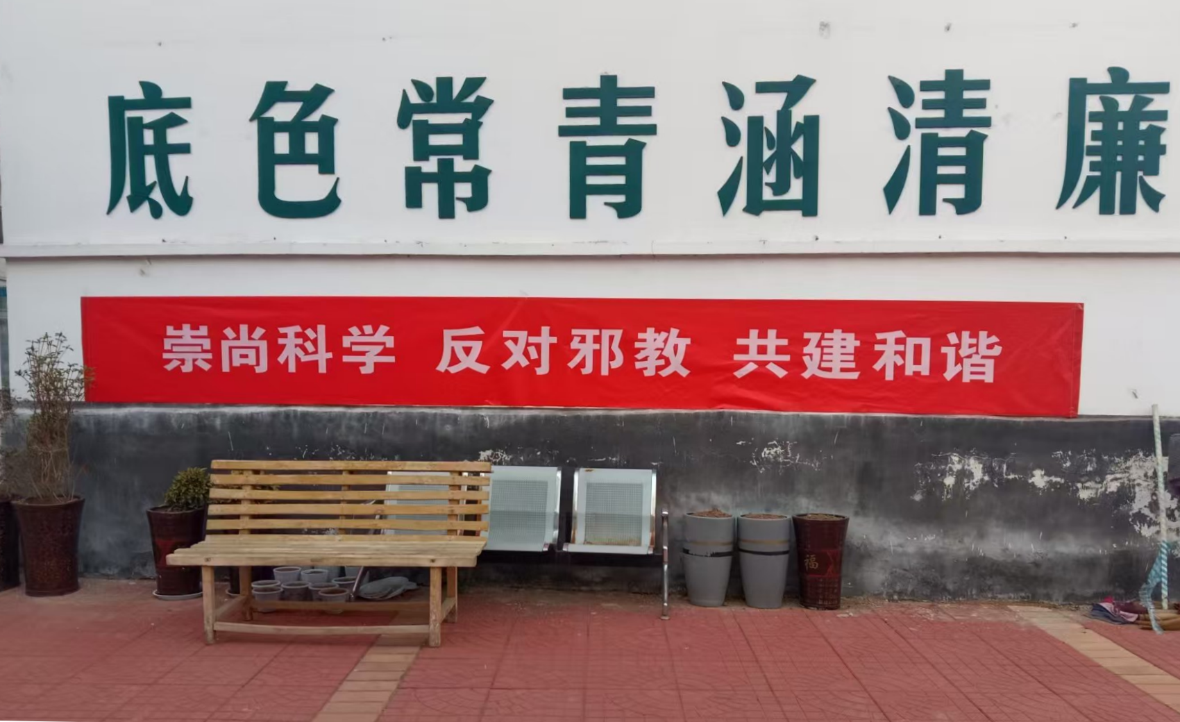 在村廣場等人流量較大的場所,綜治辦工作人員和派出所民警懸掛反邪宣傳橫幅,并向過往村民發(fā)放宣傳手冊,講解邪教的危害與防范措施。