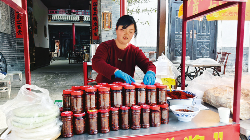 “現(xiàn)在真是大變樣!”鄭翠擦著餐桌感慨道,“我一個普通農(nóng)民,本是給孩子做的辣醬,竟然得到這么多人的認可,這讓我非常開心?!?023年,村上免費組織村民學習抖音短視頻拍攝,岳綿綿親自幫助她。鏡頭里既有辣子鍋盔的制作過程,也有青訓班舊址的紅色故事。如今這家不足200平方米的農(nóng)家樂,自從“觸網(wǎng)”后,本著薄利多銷的原則,依靠品質和服務,游客翻了一番,自制辣醬年銷售額常常供不應求。
