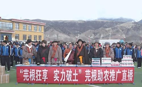 種地少年在青海省囊謙縣開展助農(nóng)直播,芫根上架后迅速售罄。資料圖