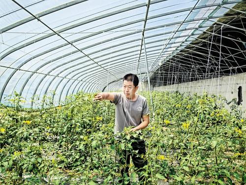 蔬菜大棚產(chǎn)業(yè)的發(fā)展還帶動(dòng)了當(dāng)?shù)卮迕窬蜆I(yè)。村民劉海燕是一座黃瓜種植大棚的老員工,自從黃瓜大棚建成后,她就在此工作?!耙荒昴軖暌蝗f(wàn)五六千元,還能照顧家里,挺知足?!碧崞鹪诩议T口工作的感受,劉海燕說(shuō)。