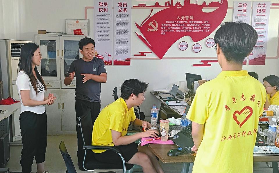 白冰(左二)指導(dǎo)大學(xué)生開展暑期社會實踐。記者 張志剛 攝