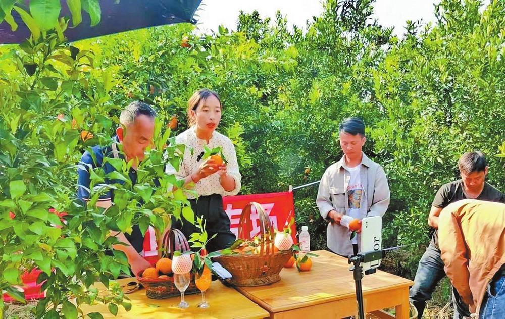 直播團隊在龍陵的果園直播銷售農產品。通訊員 宋竹節(jié) 攝