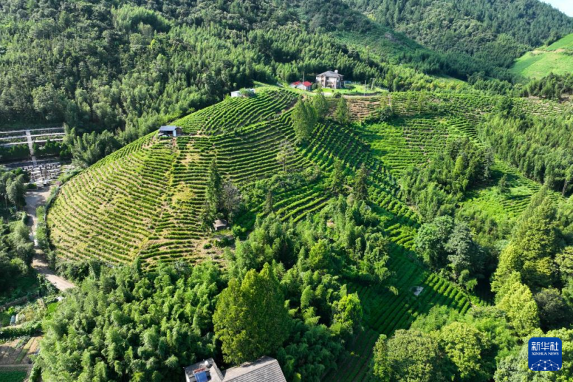 這是8月5日拍攝的浙江省杭州市余杭區(qū)徑山村茶山(無人機(jī)照片)。記者 毛竹 攝