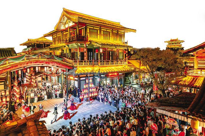 襄陽(yáng)唐城夜游結(jié)合聲光電、裸眼3D投影技術(shù)給游客帶來(lái)唐風(fēng)體驗(yàn)。