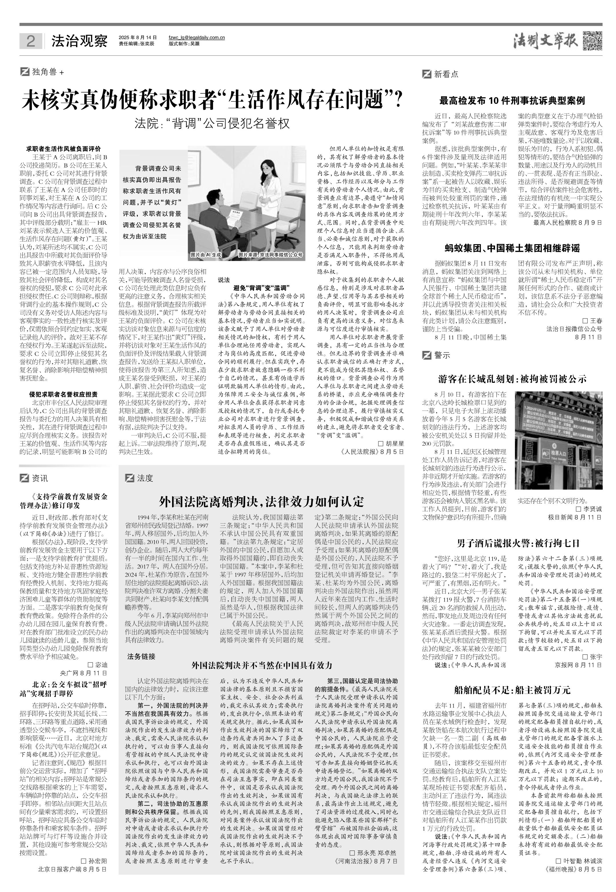 2025年8月14日《法制文萃報(bào)》總第2868期2版