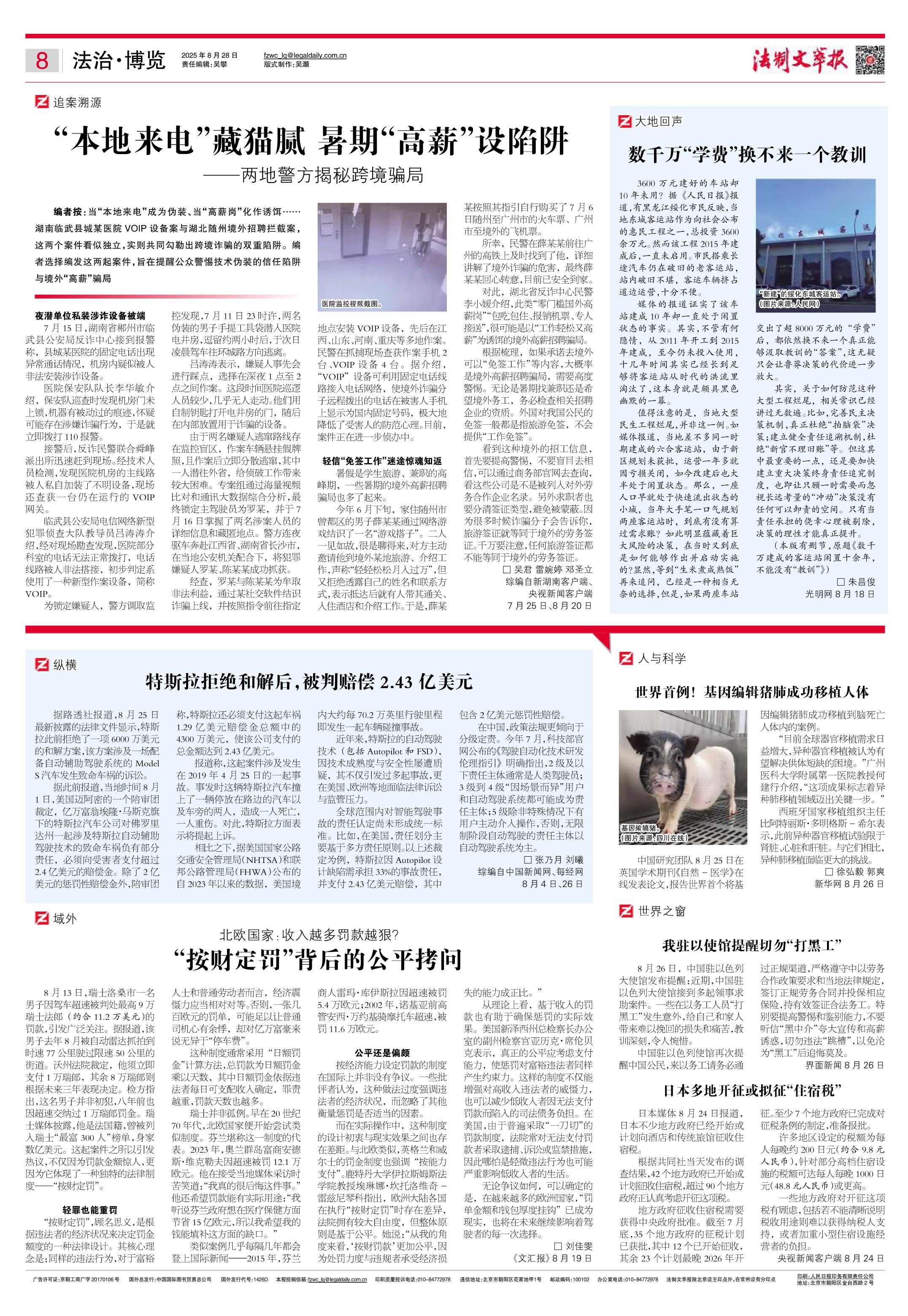 2025年8月28日《法制文萃報》總第2870期8版
