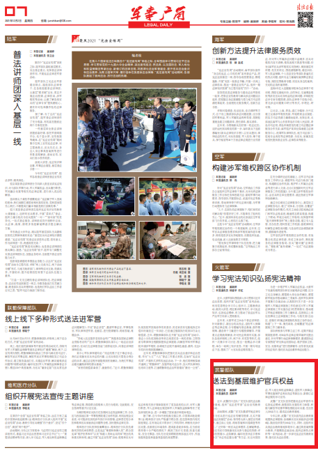 武警廣安支隊堅持把建設(shè)法治軍營作為弘揚(yáng)憲法精神、助推部隊發(fā)展的有力舉措,積極與解放軍成都軍事檢察院結(jié)對共建,先后投入130余萬元,建成法治教育基地。