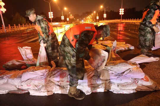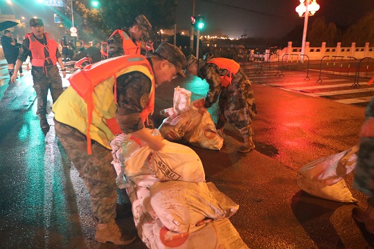 7月31日至8月2日,北京市懷柔區(qū)懷河水位持續(xù)高漲,接到上級命令后,中部戰(zhàn)區(qū)空軍地導某旅組織40余人防汛分隊,赴懷柔區(qū)大杜兩河村大橋和廟城鎮(zhèn)進行支援,開展防汛沙袋裝填、防汛墻構(gòu)筑等工作,險情得到有效控制。目前,該部官兵仍然堅守在一線,執(zhí)行警戒巡邏任務和橋梁管控任務。