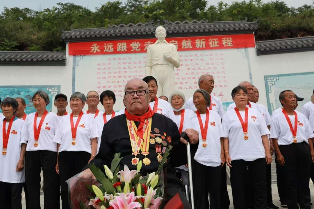 圖為王玉堂(前排)與光榮在黨五十年的老黨員們合影。姜紅燕 攝