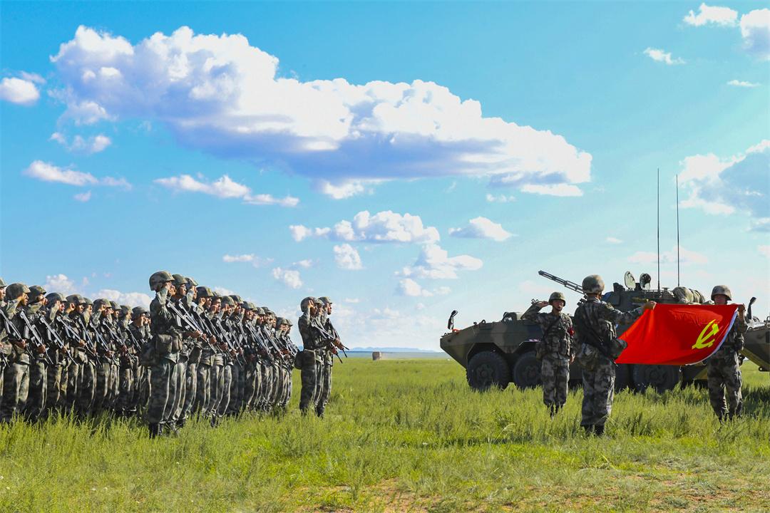 圖為“平型關(guān)大戰(zhàn)突擊連”在中蒙演習(xí)中下車戰(zhàn)斗。朱甫鑫 攝