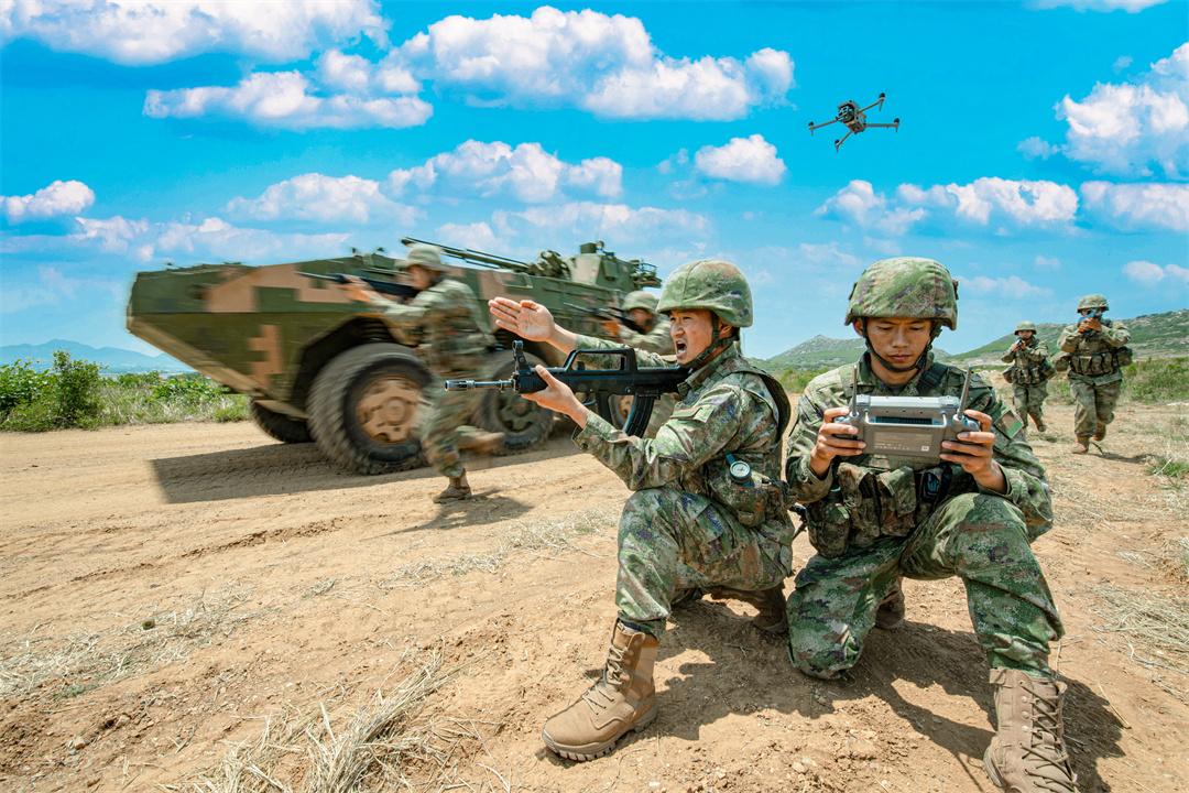 渤海灣畔某訓(xùn)練場(chǎng),擔(dān)負(fù)尖刀任務(wù)的連隊(duì)快速向縱深挺進(jìn)??罩袀刹?、無(wú)人破障、協(xié)同沖擊……面對(duì)藍(lán)軍重重防御,連長(zhǎng)閻偉見(jiàn)招拆招,熟練指揮突破“敵”陣。