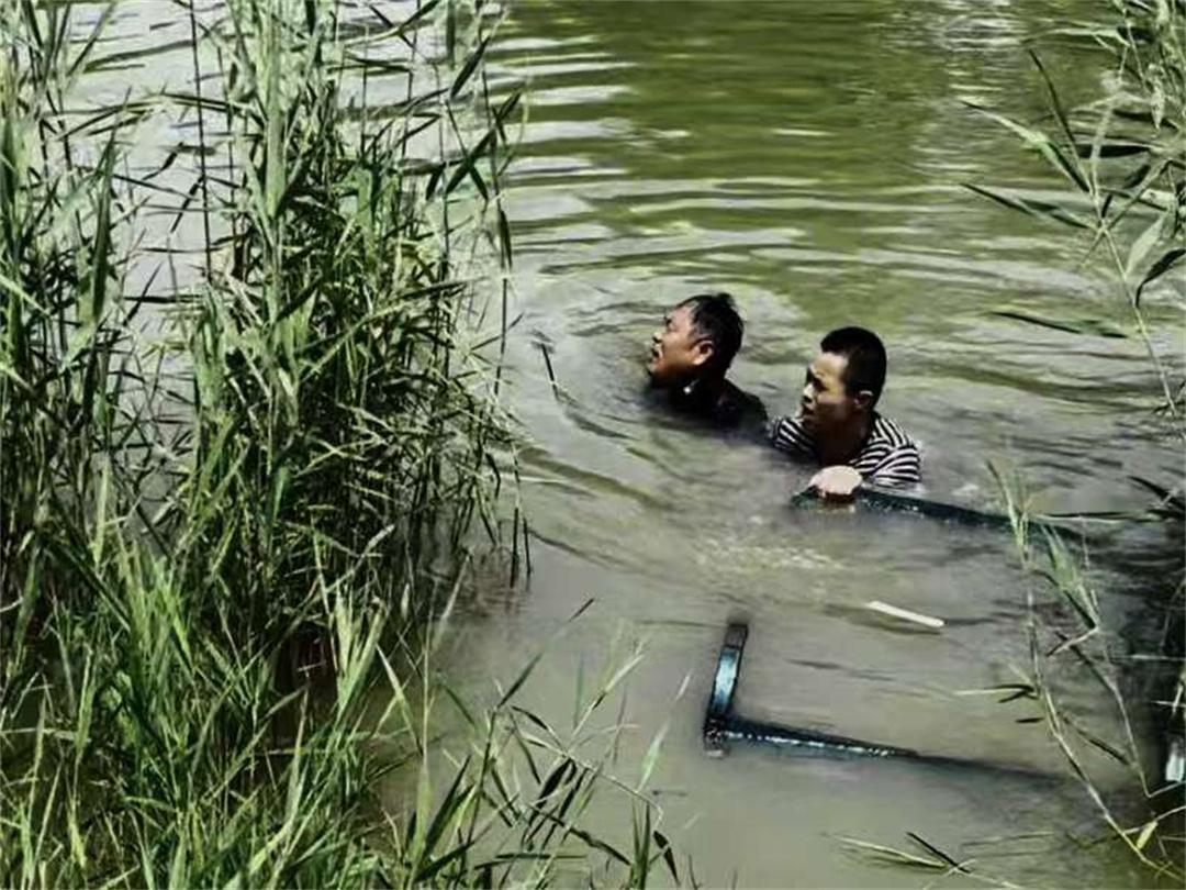 “當時就見三輪車整個扎進河里,兩個人在水里拼命撲騰,渾濁的河水已經(jīng)沒過他們大半個身子,看著就揪心?!蓖跏爻貞浾f。
