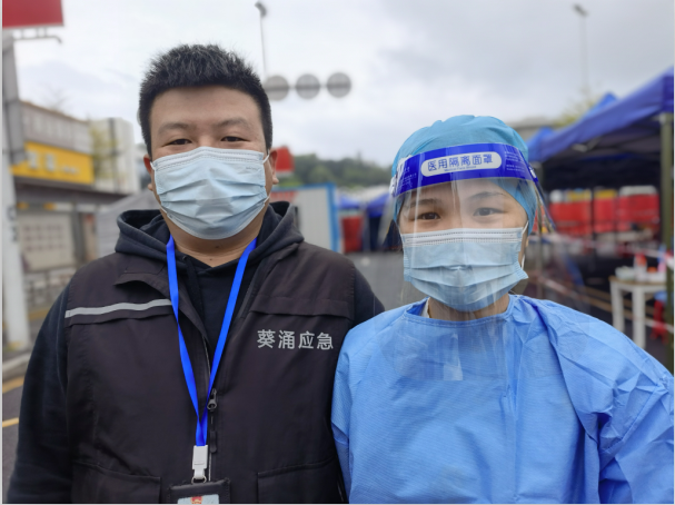 據(jù)了解,“抗疫先鋒小分隊”中還有郭逸華與陳啟忠這對“夫妻檔”也是一樣,每天堅持奮戰(zhàn)在防疫一線。