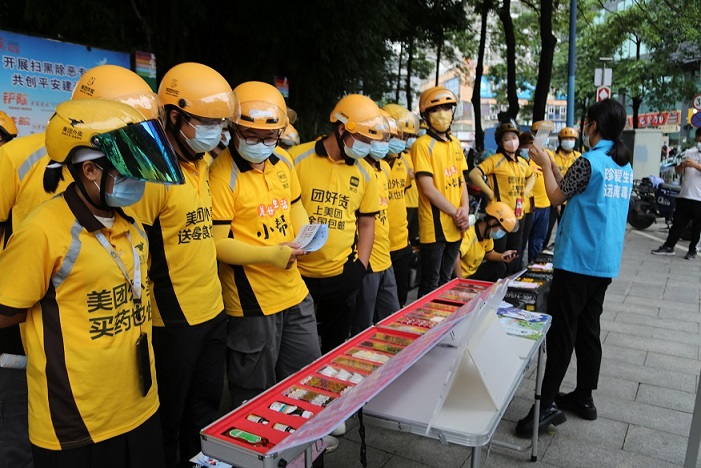 為扎實(shí)推進(jìn)禁毒宣傳“進(jìn)萬(wàn)家”,6月8日,廣東省深圳市鹽田區(qū)鹽田街道聯(lián)合美團(tuán)外賣公司,共同開展以“心有邊界,堅(jiān)守自我”為主題的禁毒宣傳活動(dòng),通過(guò)外賣的形式將毒品預(yù)防知識(shí)傳遞到千家萬(wàn)戶,以提高轄區(qū)居民抵御毒品的能力。