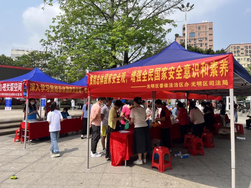 光明區(qū)委政法委聯(lián)合區(qū)司法局、玉塘街道辦等10家單位在轄內(nèi)黨建公園,圍繞“貫徹總體國家安全觀,增強全民國家安全意識和素養(yǎng),夯實以新安全格局保障新發(fā)展格局的社會基礎(chǔ)”這一主題,向過往的群眾就什么是國家安全、危害國家安全的行為、公民應(yīng)如何維護國家安全等內(nèi)容開展宣傳教育。