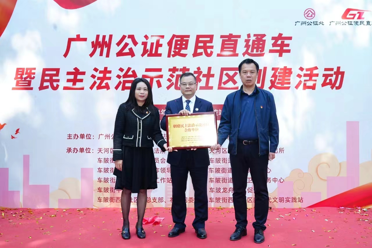 3月20日上午,廣州公證處與天河區(qū)司法局、車陂街道黨工委、辦事處在車陂公園聯(lián)合舉辦了廣州公證便民直通車暨民主法治示范社區(qū)創(chuàng)建活動(dòng)啟動(dòng)儀式。車陂街道自此拉開了以基層社區(qū)為依托,以黨建為引領(lǐng),以公證服務(wù)為抓手,協(xié)同司法、公證、街道三方力量合作創(chuàng)建民主法治示范社區(qū)的序幕。