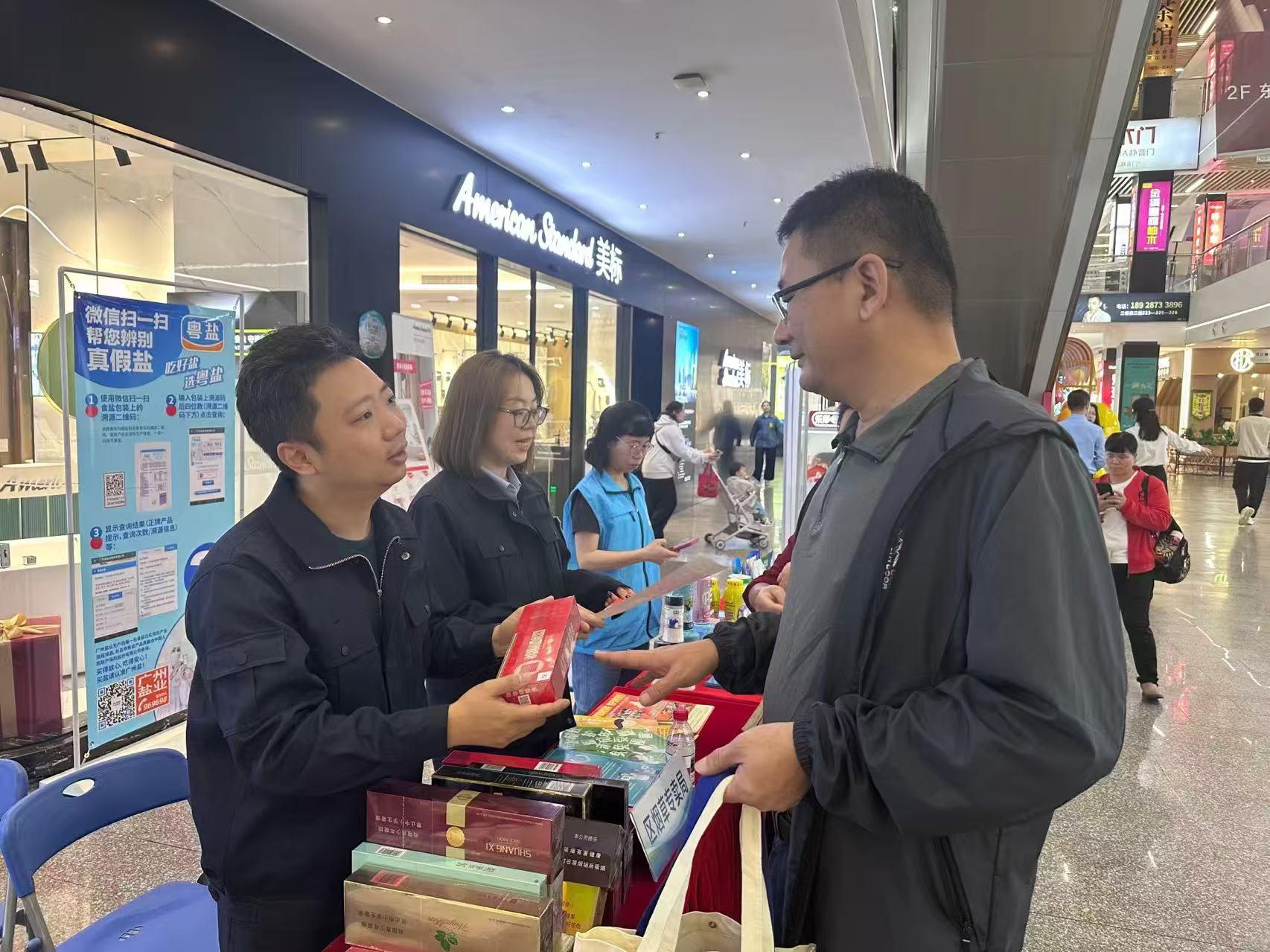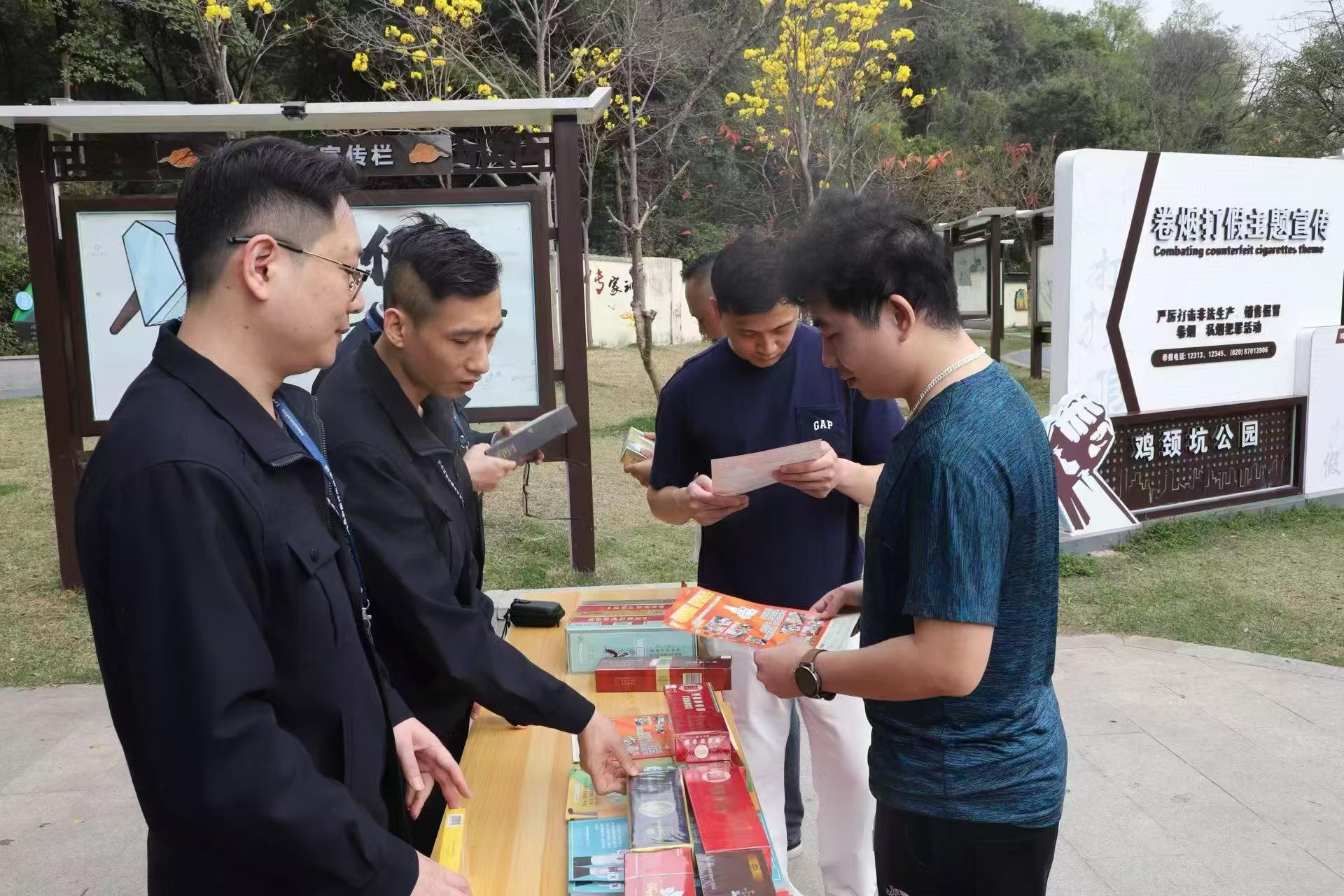 活動現(xiàn)場,天河區(qū)煙草專賣局的工作人員紛紛化身“消費安全衛(wèi)士”,熱情且耐心地為過往群眾講解卷煙真?zhèn)舞b別技巧。工作人員手持真、假煙樣品,細(xì)致對比,從包裝印刷的清晰度、煙絲色澤的差異、口感香氣的不同等多個維度,用通俗易懂的語言傳授辨別方法,幫助群眾練就一雙識別真假煙的“火眼金睛”。