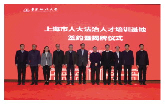 2021年12月30日,上海市人大法治人才培訓基地簽約暨揭牌儀式在華東政法大學長寧校區(qū)舉行。上海市人大常委會主任蔣卓慶與華東政法大學黨委書記郭為祿代表雙方為“上海市人大法治人才培訓基地”揭牌。上海市人大常委會副秘書長、辦公廳主任曹扶生與華東政法大學校長葉青共同簽署合作協(xié)議。上海市人大常委會副主任莫負春,法制委主任委員陸曉棟,法工委主任閻銳,立法專家顧問丁偉,華東政法大學黨委副書記、紀委書記應培禮,副校長張明軍、韓強出席會議。會議由莫負春主持。