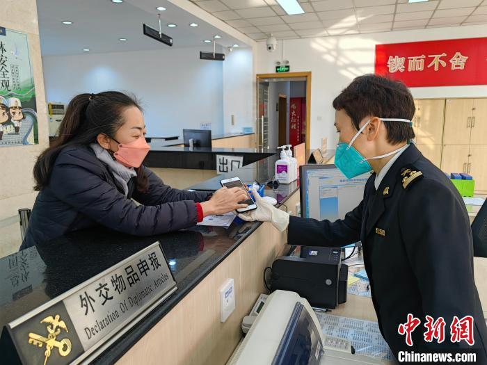 圖為北京會(huì)展中心海關(guān)關(guān)員解答駐華使館公用物品入境咨詢事宜。 劉輝 攝