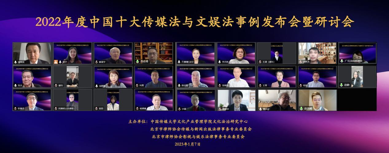 2023年1月7日,“2022年度中國十大傳媒法與文娛法事例發(fā)布會(huì)暨研討會(huì)”在北京以線上方式舉辦。