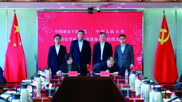 2月13日,中國(guó)人民大學(xué)與中國(guó)延安干部學(xué)院特色學(xué)科合作共建協(xié)議簽約儀式在中國(guó)人民大學(xué)舉行。中國(guó)人民大學(xué)黨委書記張東剛,黨委副書記、副校長(zhǎng)胡百精,副校長(zhǎng)王易;中國(guó)延安干部學(xué)院分管日常工作的副院長(zhǎng)姜澤洵,副院長(zhǎng)趙耀宏、韓東暉出席簽約儀式。中國(guó)人民大學(xué)黨委副書記齊鵬飛主持簽約儀式。