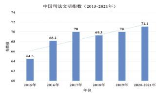 圖為中國司法文明指數(shù)的整體變化(2015-2021)。