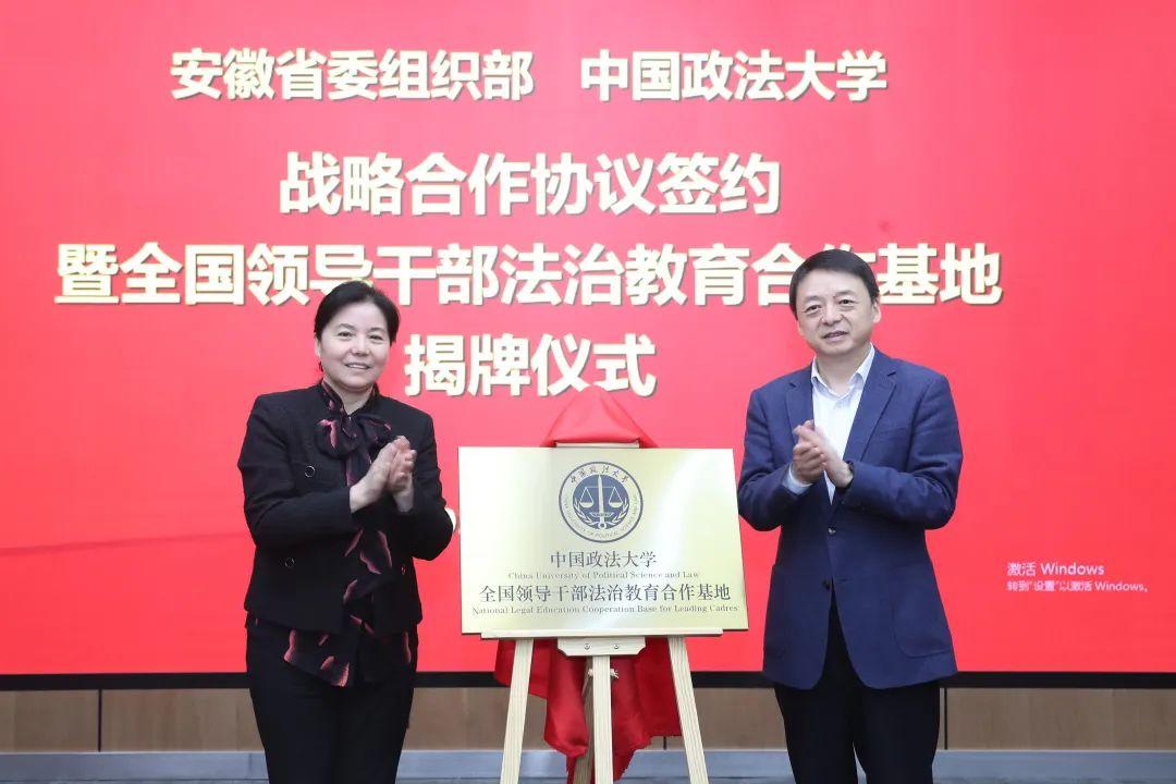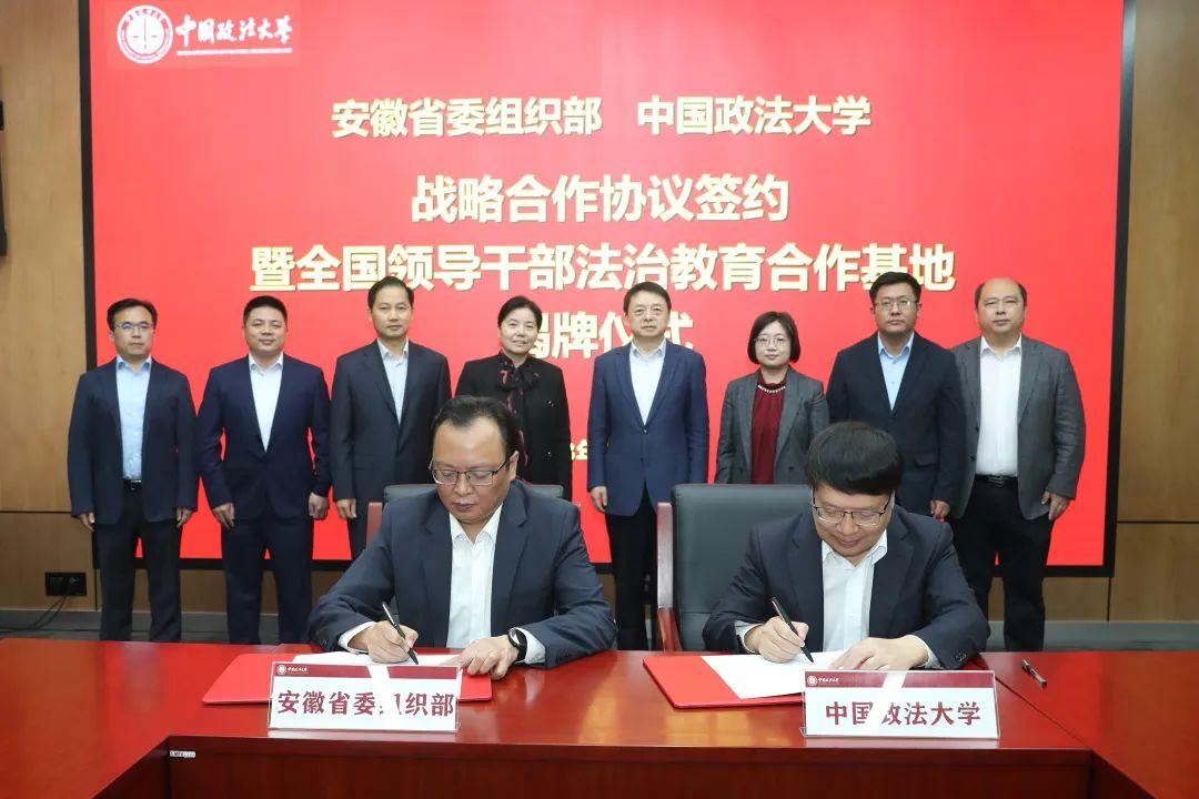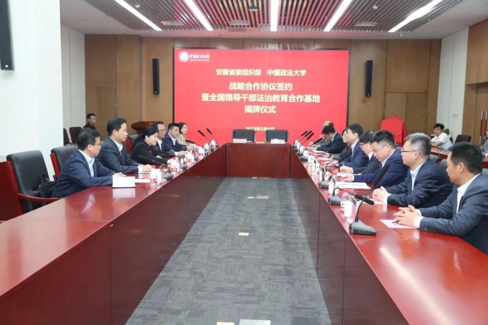 5月4日下午,安徽省委組織部與中國政法大學(xué)戰(zhàn)略合作協(xié)議簽約暨全國領(lǐng)導(dǎo)干部法治教育合作基地揭牌儀式在京舉行。安徽省委常委、組織部部長丁向群,安徽省委組織部副部長蔣曦,中國政法大學(xué)校長馬懷德出席儀式。儀式由中國政法大學(xué)副校長常保國主持。