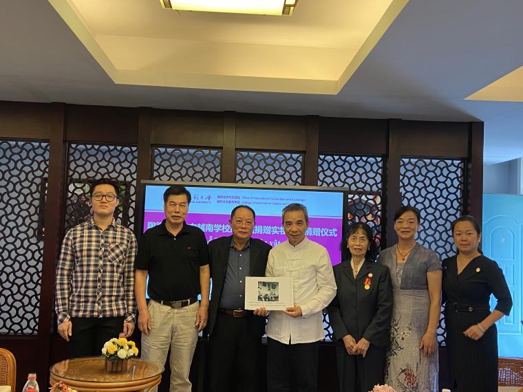 (圖為:陶德清先生向越南學(xué)校紀念館贈送父親當(dāng)年在桂林工作照片)