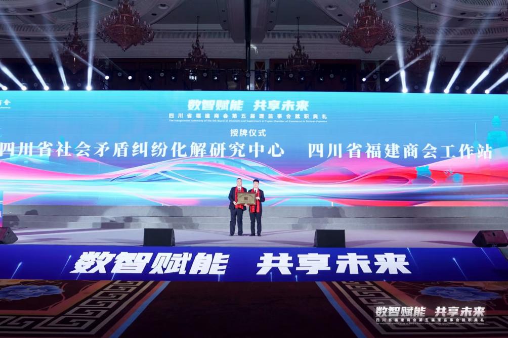 近日,四川省福建商會第五屆理監(jiān)事會就職典禮在成都舉行,新一屆理監(jiān)事會成員集體亮相,新的征程就此揚(yáng)帆起航。典禮上,四川省福建商會為閩商調(diào)解中心、四川省社會矛盾糾紛化解研究中心四川省福建商會工作站授牌,這意味著四川省福建商會法治保障得到進(jìn)一步夯實(shí),商會以法治思維引領(lǐng)企業(yè)發(fā)展之路至此踏上了新征程。