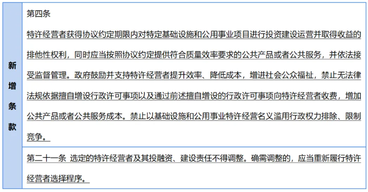 ②許可及收費(fèi)上,不新設(shè)行政許可、不得擅自增設(shè)行政許可并借此向特許經(jīng)營(yíng)者收費(fèi);