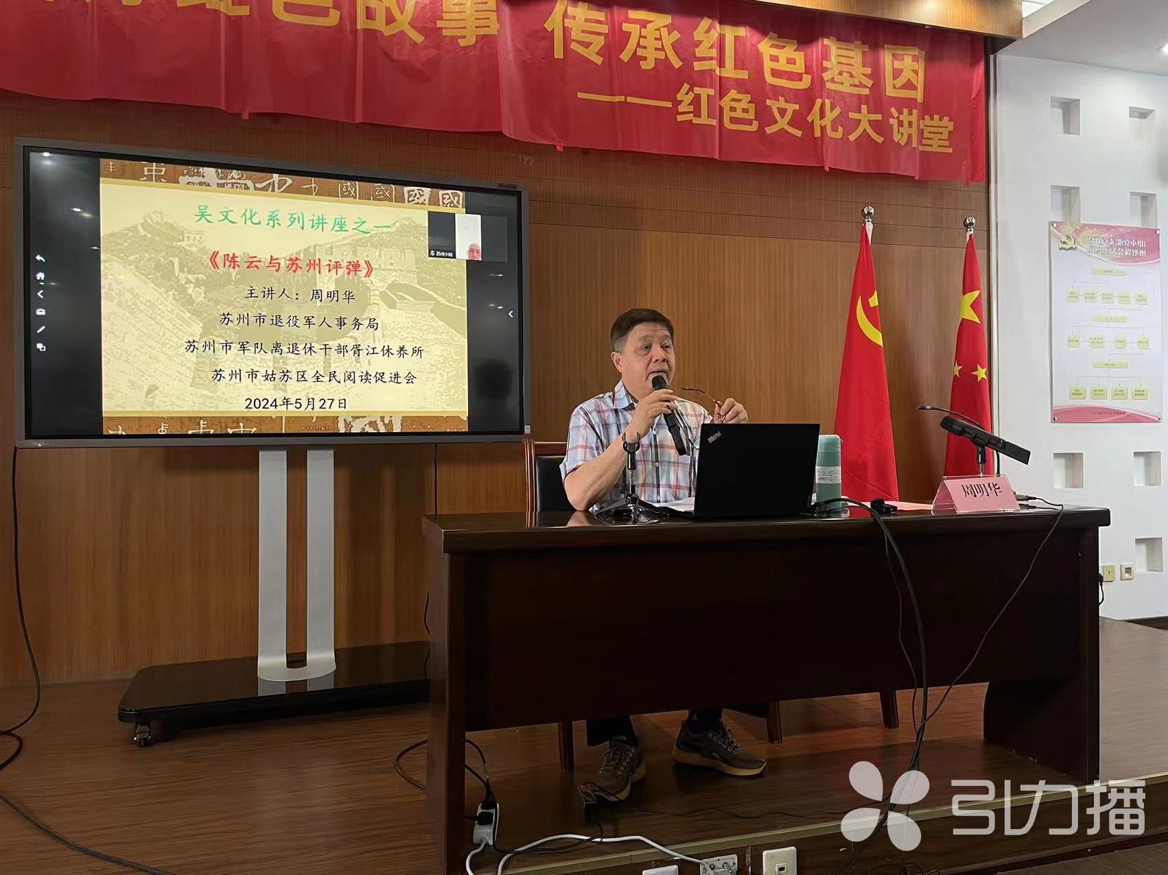 5月27日,首期“紅色文化大講堂”在蘇州市軍隊(duì)離休退休干部胥江休養(yǎng)所開(kāi)講,邀請(qǐng)著名蘇州評(píng)話藝術(shù)家周明華主講《陳云與蘇州評(píng)彈》,以生動(dòng)活潑的形式講好紅色故事,傳承紅色基因。