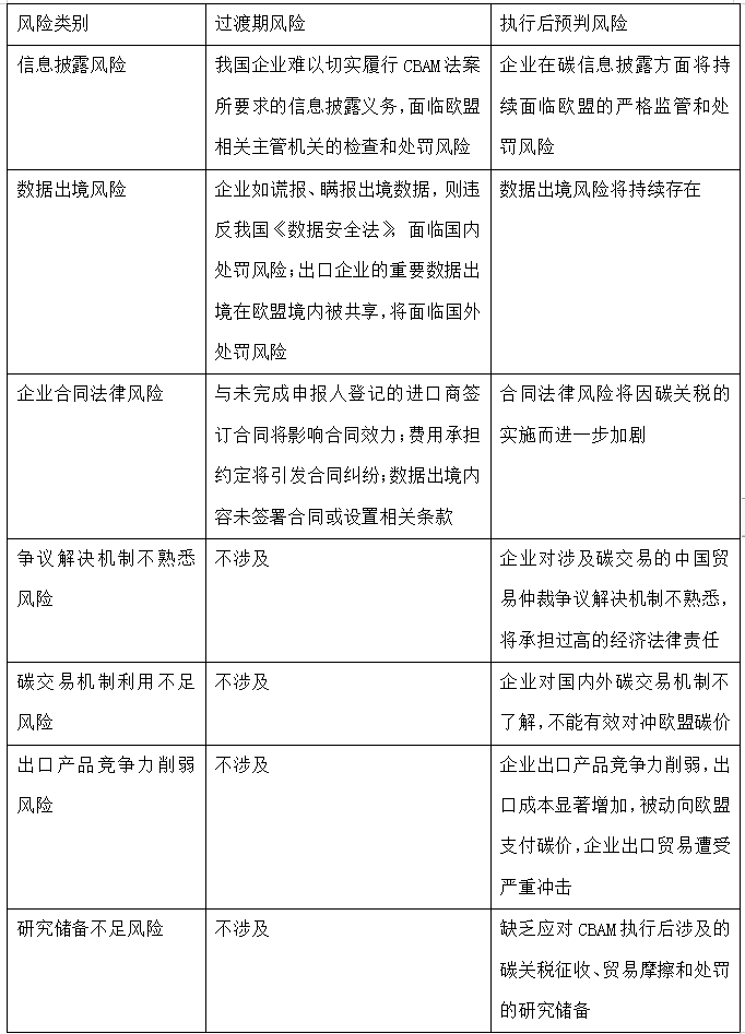 天達(dá)共和碳合規(guī)法律服務(wù)律師結(jié)合相關(guān)研究與實(shí)際案件將中國企業(yè)在歐盟CBAM中面臨的現(xiàn)實(shí)困境按照影響方面、風(fēng)險(xiǎn)類別及潛在后果進(jìn)行匯總,供大家參閱。