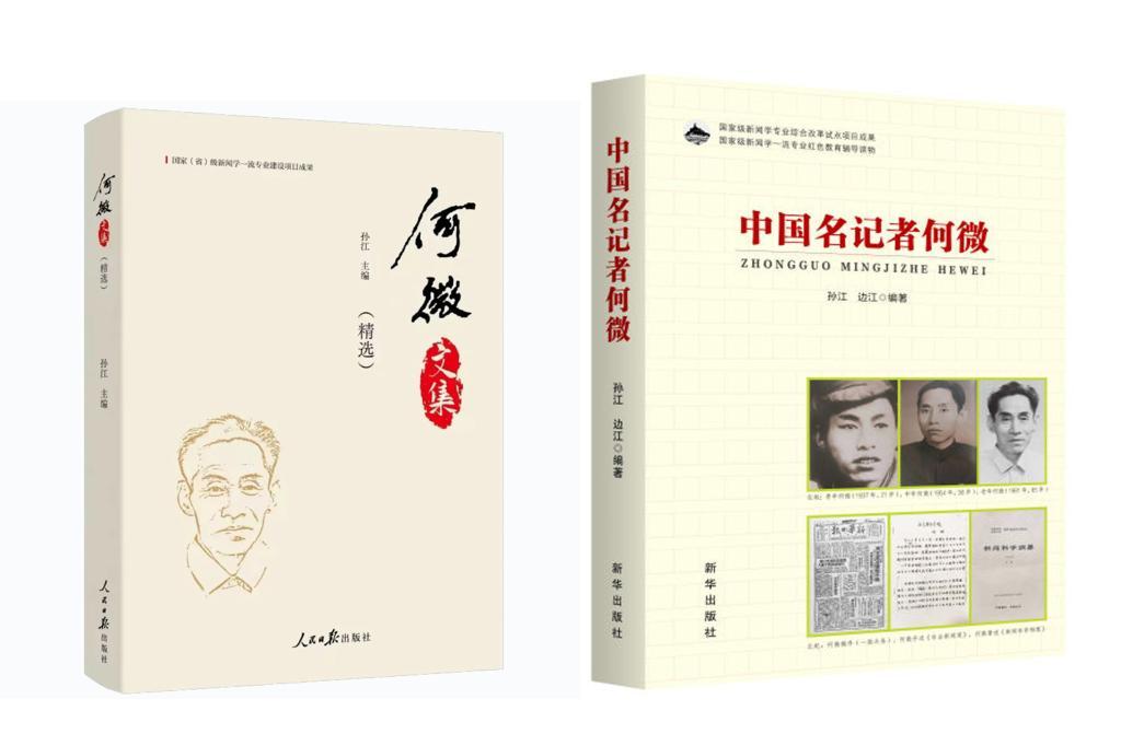 (《何微文集》《中國名記者何微》兩本書的封面)