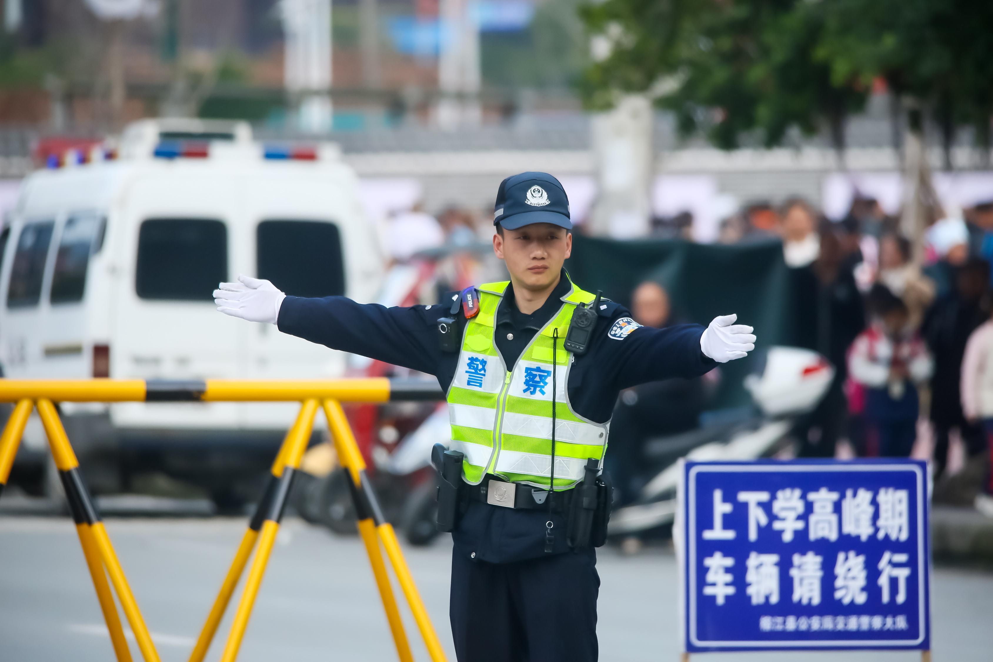 貴州省榕江縣公安局交通警察大隊(duì)民警在校園周邊路口疏導(dǎo)過(guò)往車輛