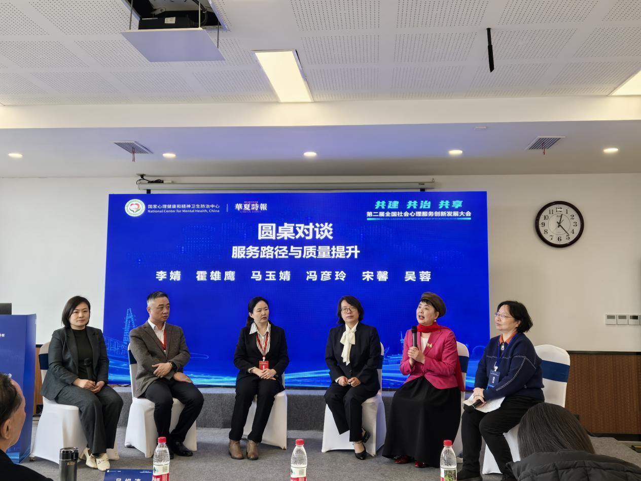 圖為宋馨在圓桌對話會上分享為困境兒童提供心理健康關愛服務