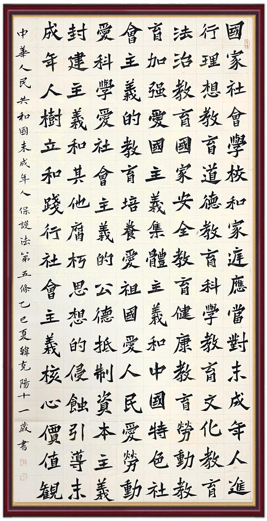 “六一”國際兒童節(jié)來臨之際,“書·法”活動邀請小朋友們書寫《中華人民共和國未成年人保護法》。一筆一畫寫未來,一字一句守純真!