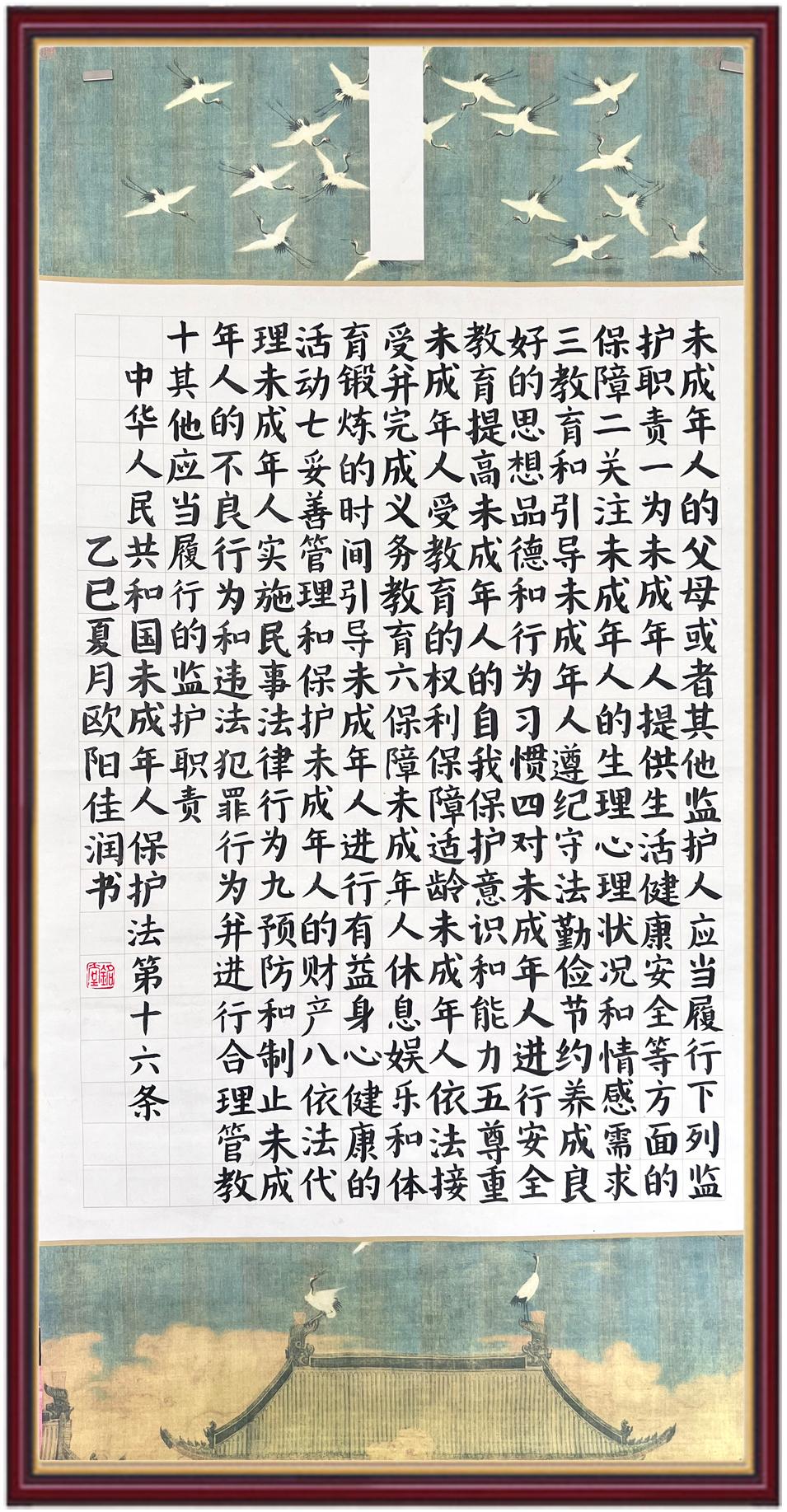 “六一”國際兒童節(jié)來臨之際,“書·法”活動邀請小朋友們書寫《中華人民共和國未成年人保護法》。一筆一畫寫未來,一字一句守純真!