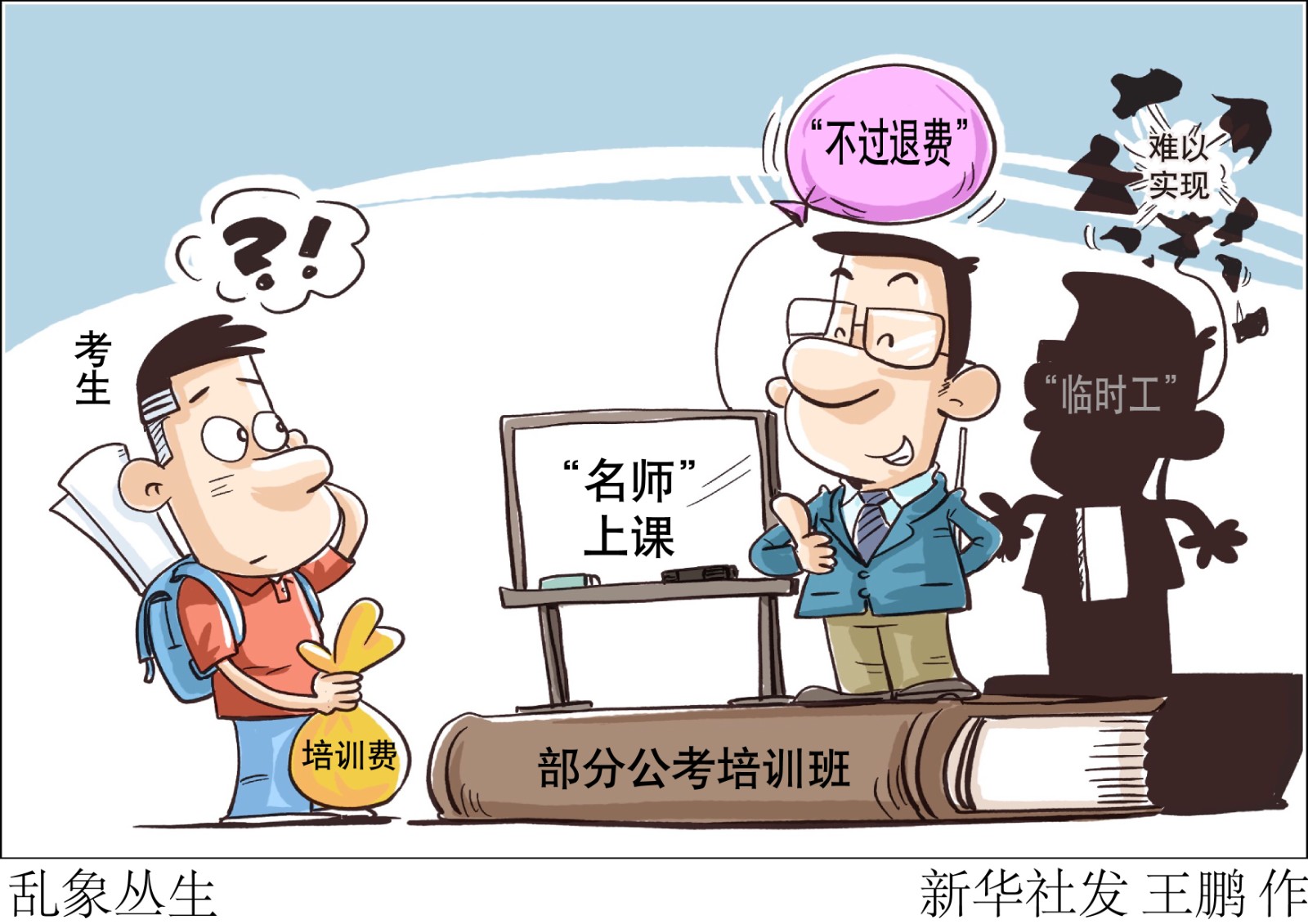 眼下,國家、地方公務(wù)員及選調(diào)生考試筆試大都已經(jīng)結(jié)束,一些地方面試因疫情推遲。為應(yīng)對公考筆試、面試,不少大學(xué)畢業(yè)生參加各種培訓(xùn)班?!靶氯A視點(diǎn)”記者調(diào)查發(fā)現(xiàn),有些培訓(xùn)機(jī)構(gòu)所謂的“名師”,竟是招聘的“臨時(shí)工”;所謂“不過退費(fèi)”,有的難以實(shí)現(xiàn)。