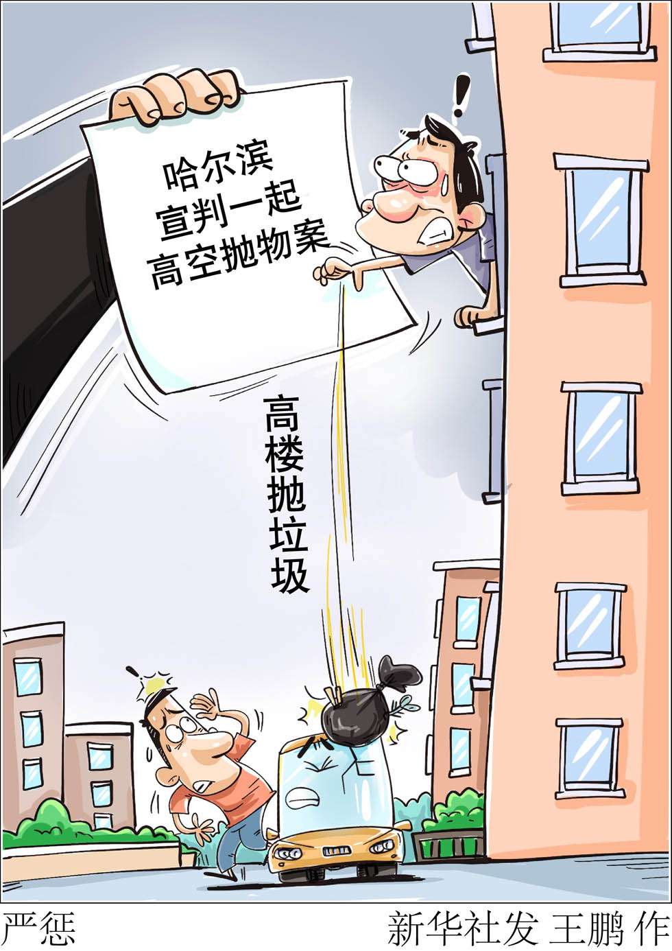 從高層建筑物向下拋擲物品,不僅是民事違法行為,還可能構(gòu)成刑事犯罪。5月20日,哈爾濱市道外區(qū)人民法院公開宣判一起高空拋物罪案件,被告人于某某犯高空拋物罪,被判處有期徒刑六個(gè)月,緩刑一年。