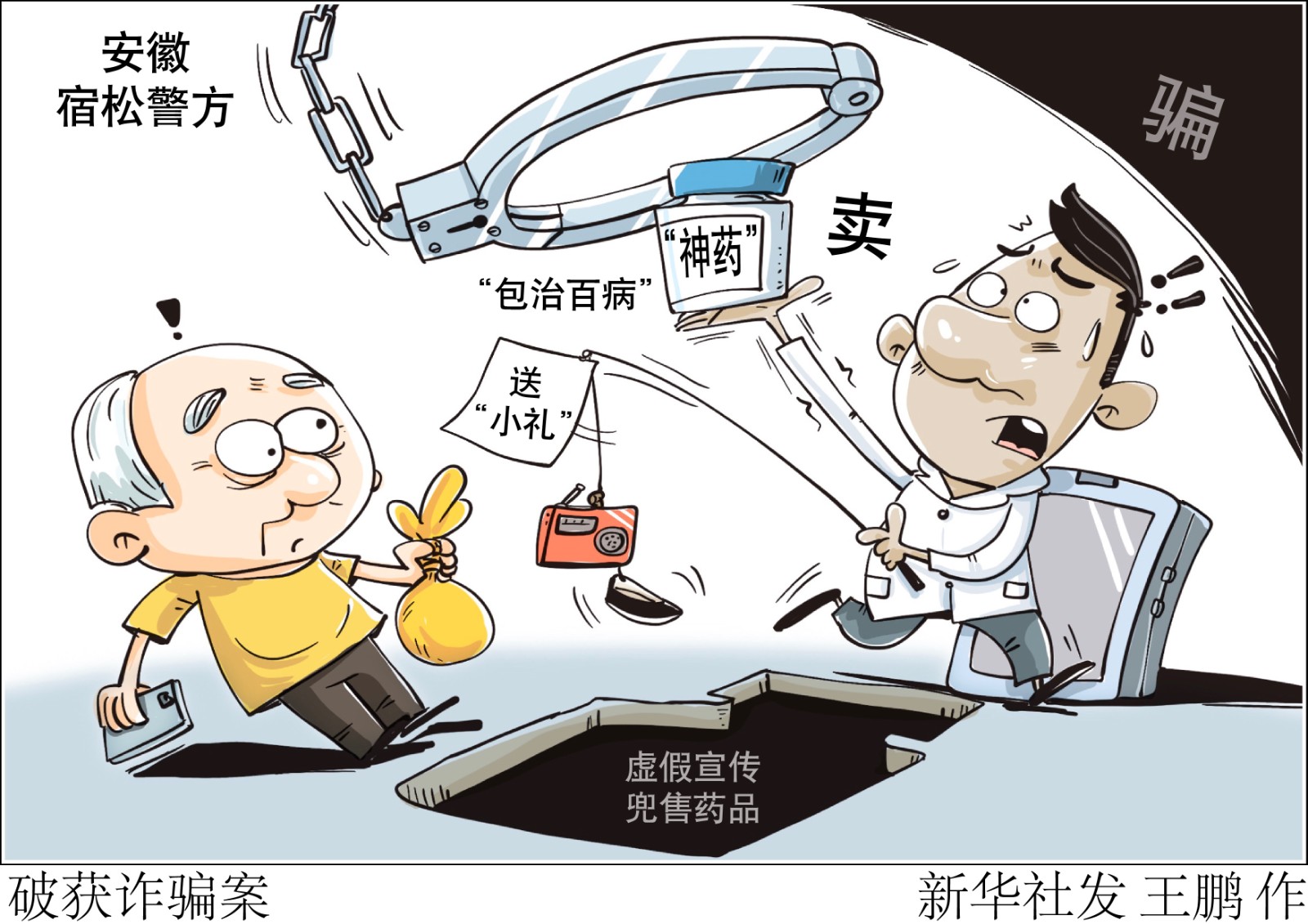 評書機、老人鞋等“小禮”請先笑納,“包治百病”的“神藥”快來試試?小心“騙你沒商量”!記者日前從安徽省安慶市宿松縣公安局了解到,當(dāng)?shù)鼐酱虻粢粋€向中老年群體虛假宣傳兜售藥品進行詐騙的犯罪團伙,全國多地數(shù)千人上當(dāng),涉案金額近千萬元。
