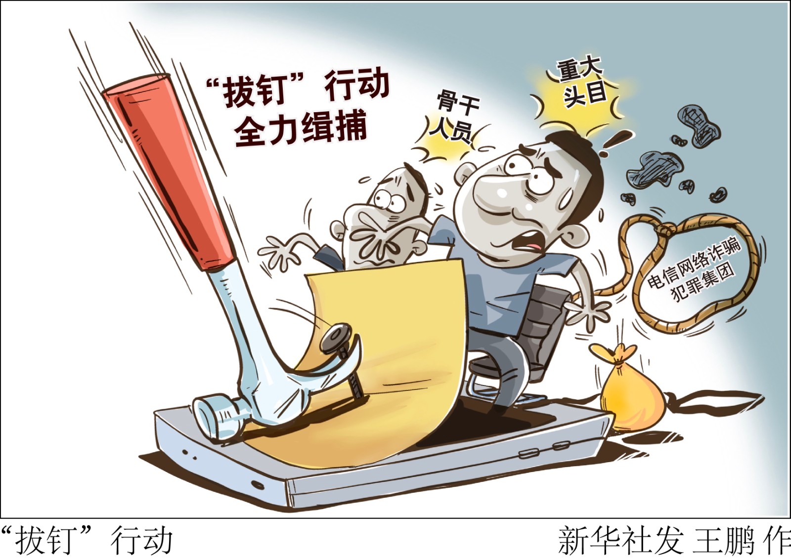 國(guó)務(wù)院打擊治理電信網(wǎng)絡(luò)新型違法犯罪工作部際聯(lián)席會(huì)議辦公室6月9日部署,在全國(guó)開展為期一年的“拔釘”行動(dòng),對(duì)電信網(wǎng)絡(luò)詐騙集團(tuán)重大頭目和骨干人員開展專項(xiàng)緝捕。