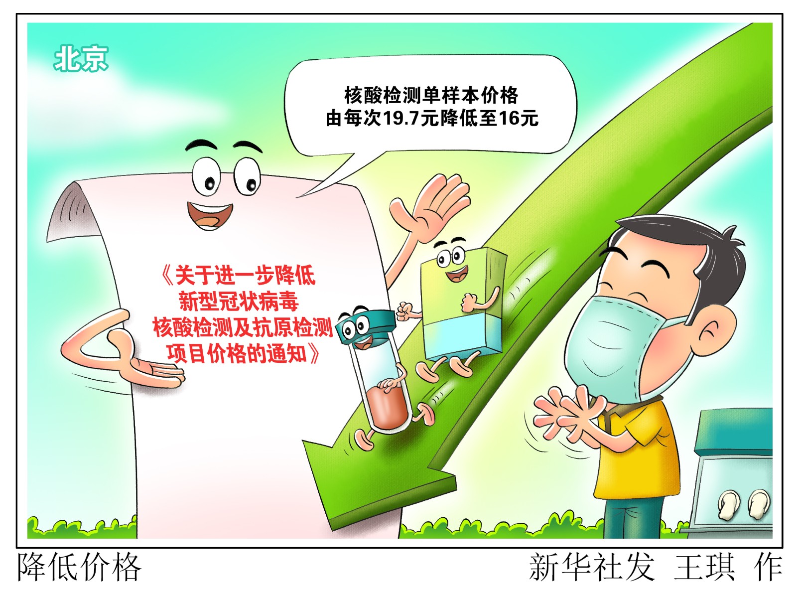 記者6月11日從北京市醫(yī)保局獲悉,北京市醫(yī)保局會(huì)同市衛(wèi)生健康委、市財(cái)政局以及市人力社保局印發(fā)《關(guān)于進(jìn)一步降低新型冠狀病毒核酸檢測(cè)及抗原檢測(cè)項(xiàng)目?jī)r(jià)格的通知》,自6月12日起北京市新冠病毒核酸檢測(cè)單樣本價(jià)格由每次19.7元降低至16元,混合檢測(cè)價(jià)格保持不變,仍為每人份3.4元(均包含采樣服務(wù)費(fèi)每人份0.8元)。