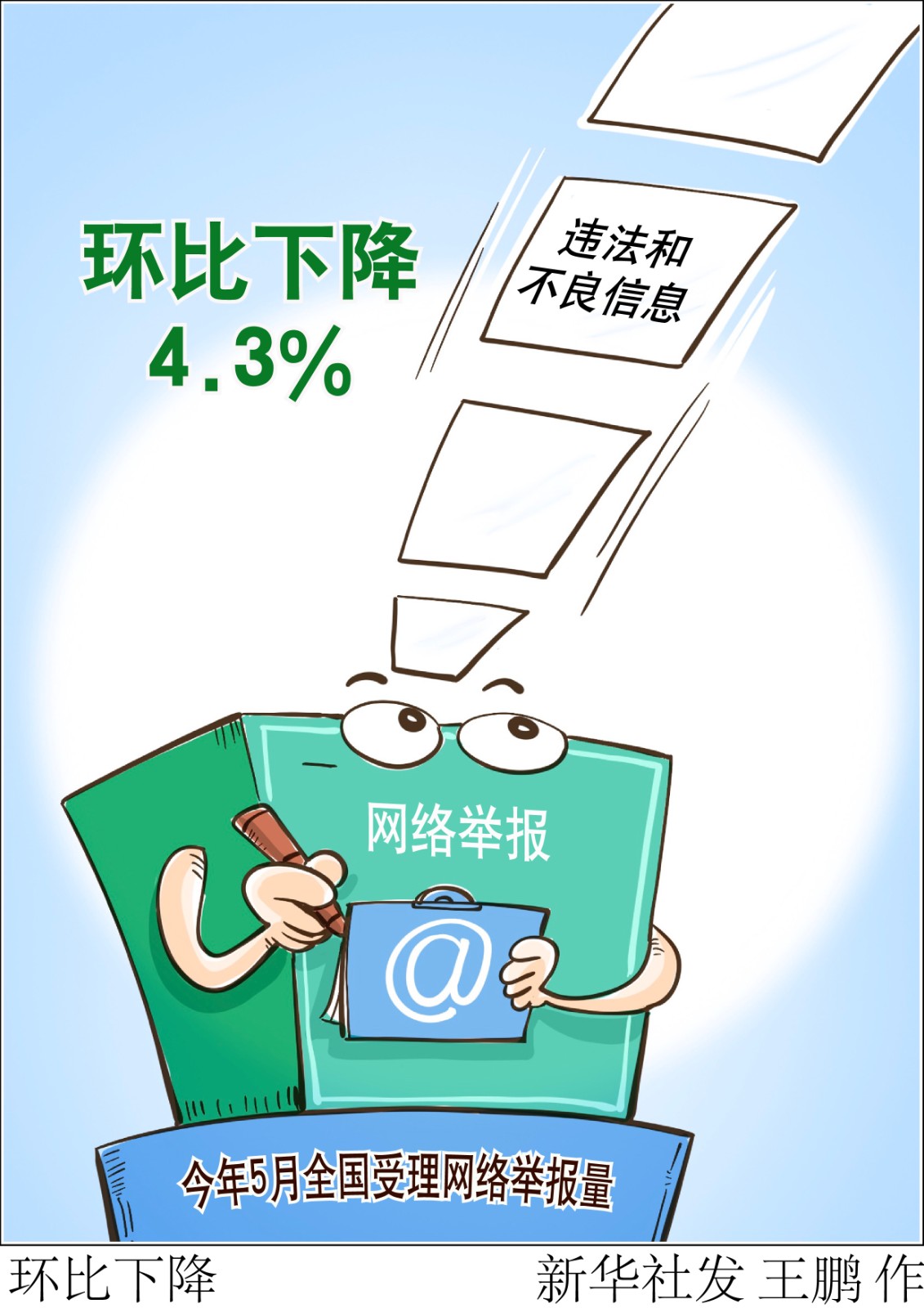 中央網(wǎng)信辦(國(guó)家互聯(lián)網(wǎng)信息辦公室)違法和不良信息舉報(bào)中心公布的統(tǒng)計(jì)數(shù)據(jù)顯示,今年5月,全國(guó)各級(jí)網(wǎng)絡(luò)舉報(bào)部門受理舉報(bào)1534.3萬(wàn)件,環(huán)比下降4.3%、同比增長(zhǎng)3.9%。