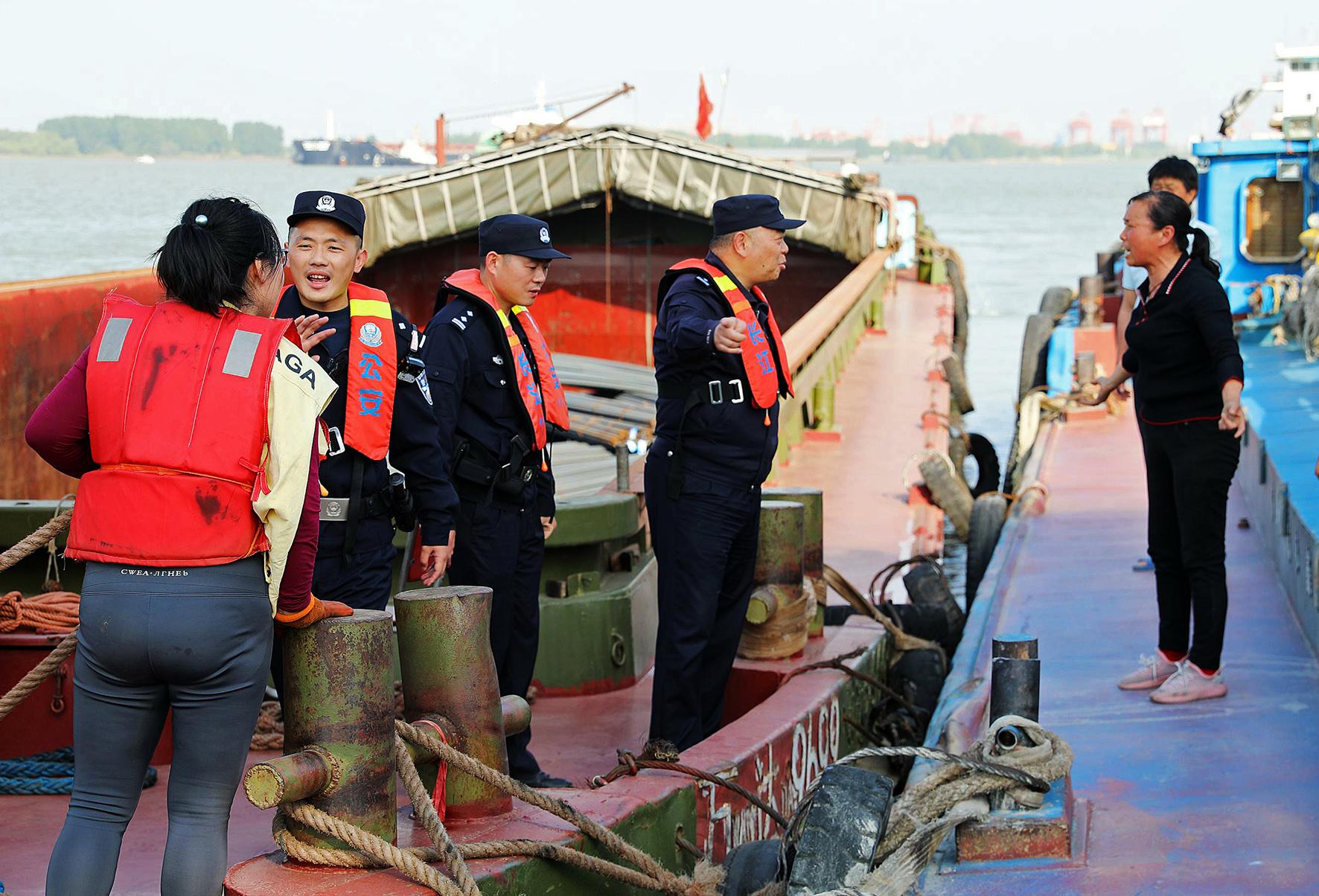 5月3日,長江航運公安局南通分局民警在長江如皋段現(xiàn)場調(diào)解一起散貨船之間發(fā)生的矛盾糾紛。