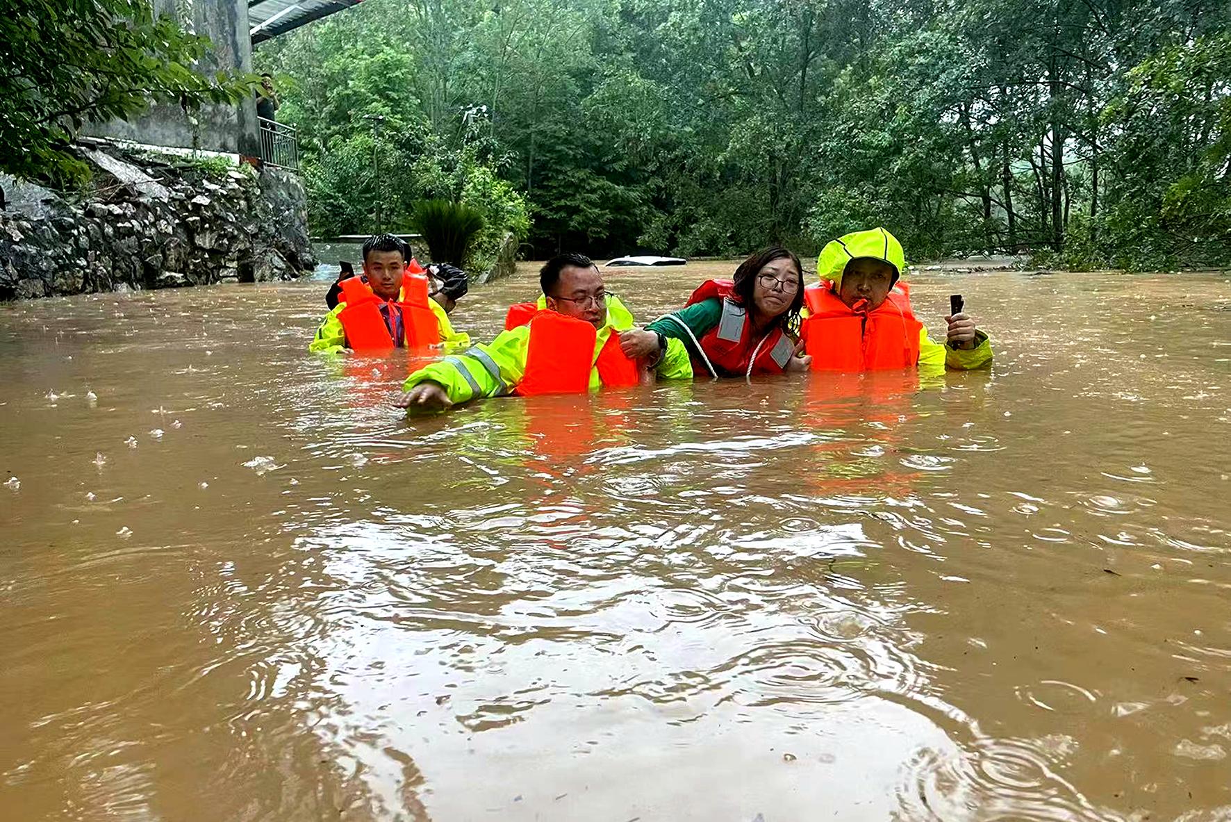 7月13日,四川省綿陽市江油市一女士駕車途徑大康鎮(zhèn)雙十橋時被突然上漲的洪水圍困。接警后,大康派出所民輔警迅速趕到現(xiàn)場,經(jīng)過半小時努力將被困洪水中的女士救援至安全地帶。